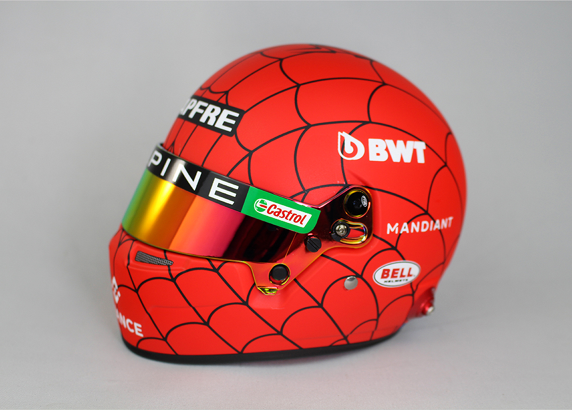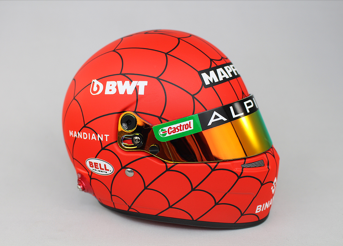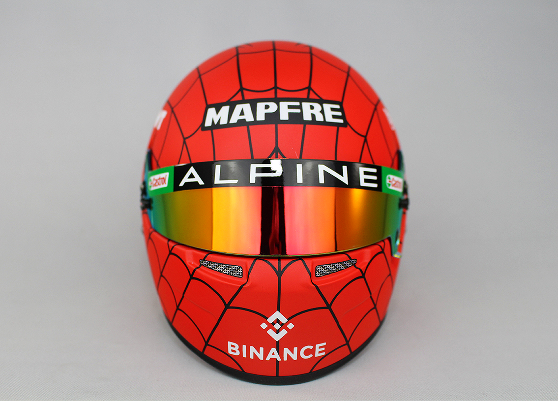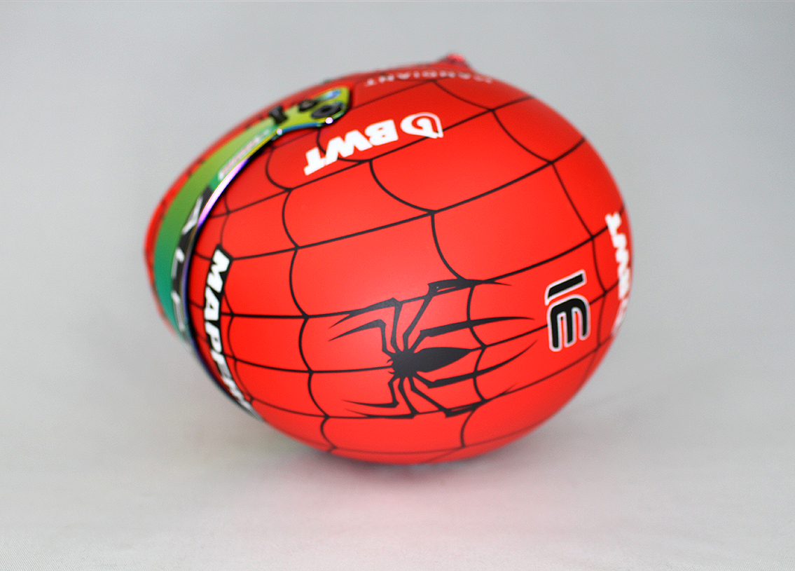 A 2022-es valódi sisak tökéletes mása, fele akkora méretben. Austin GP.