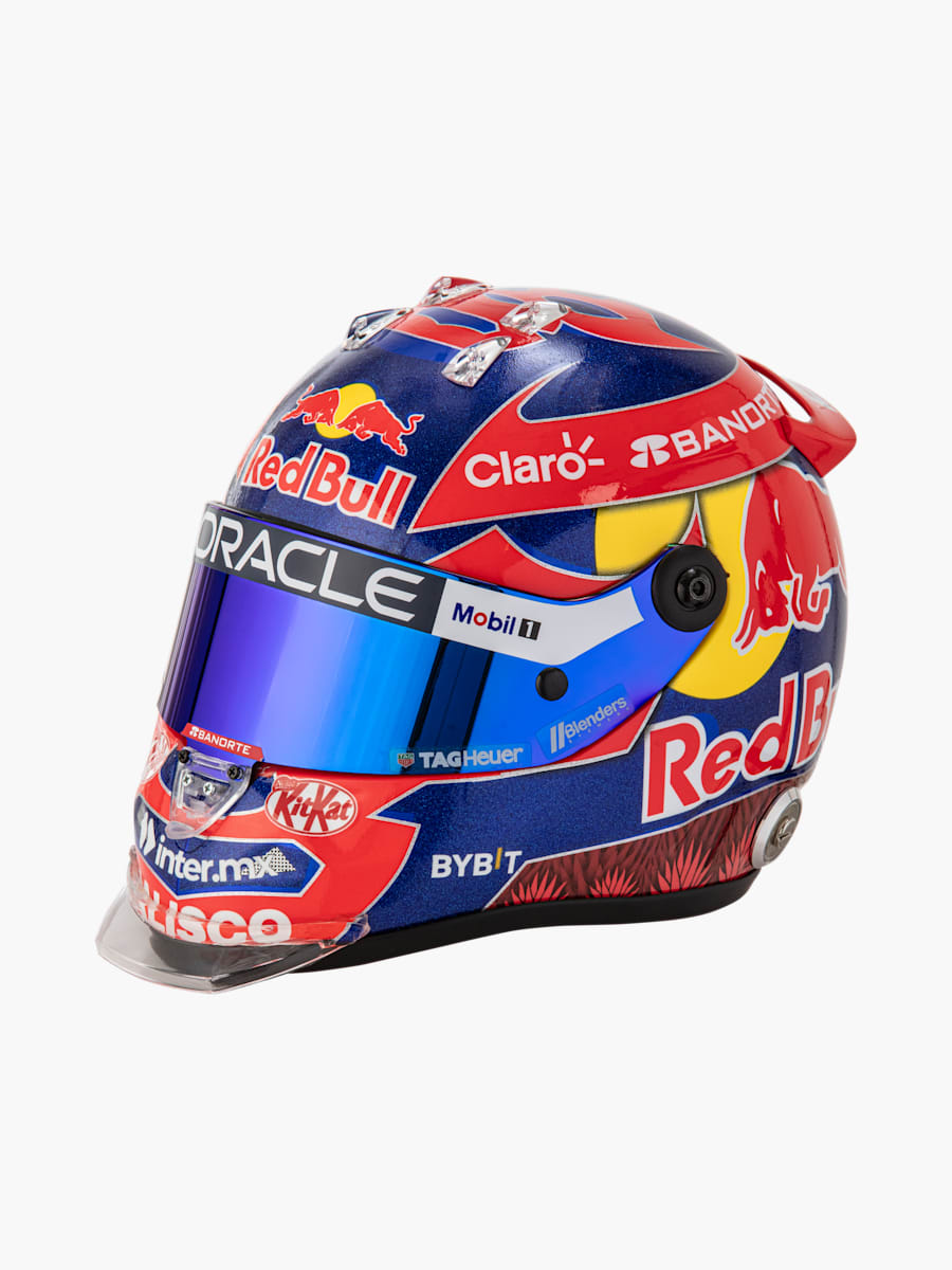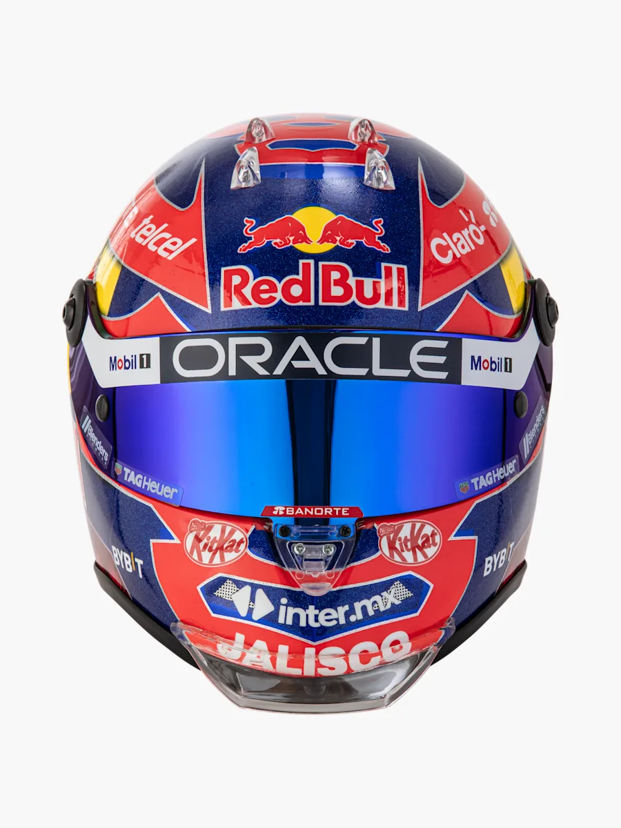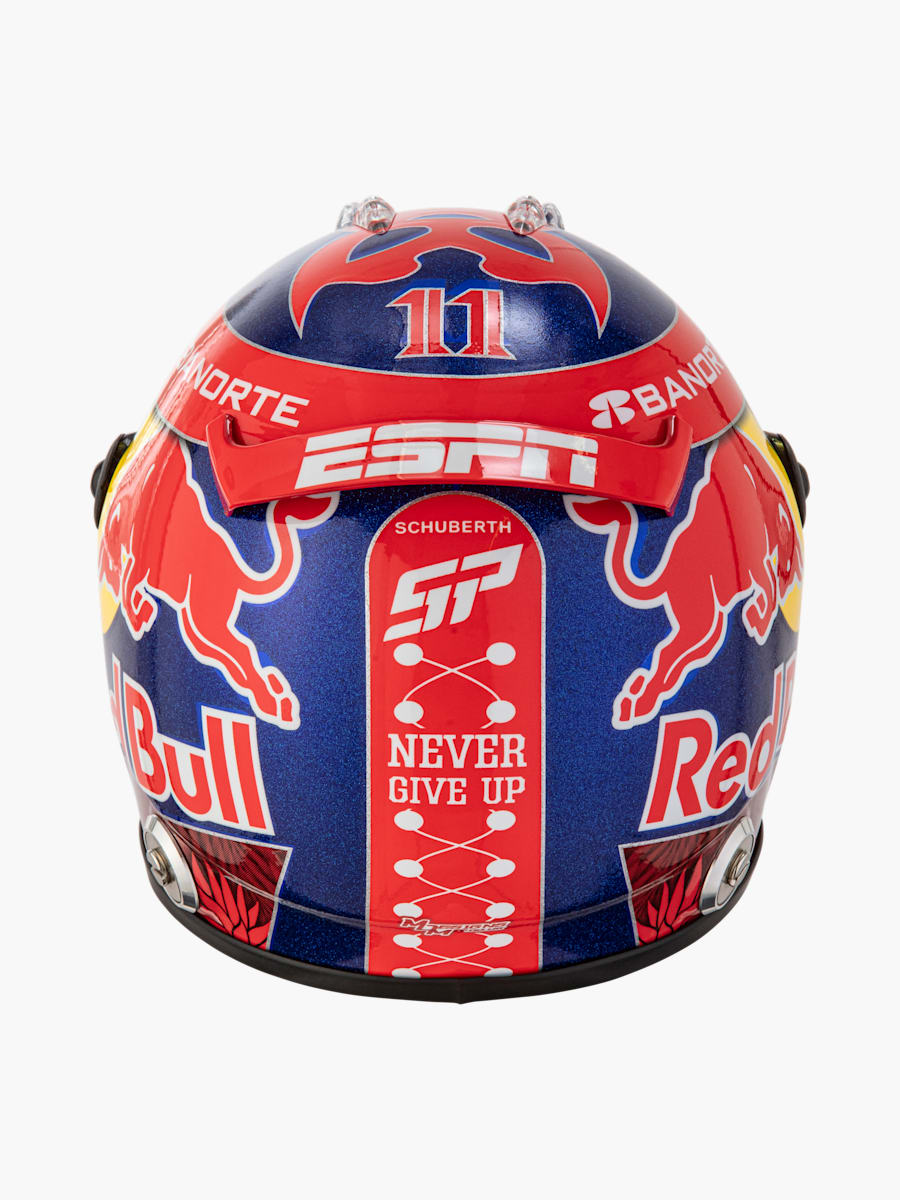 Ez a miniatűr sisak pontosan másolja le Perez egyedi dizájnját, amelyet a 2024-es Mexikói Nagydíjon használt.